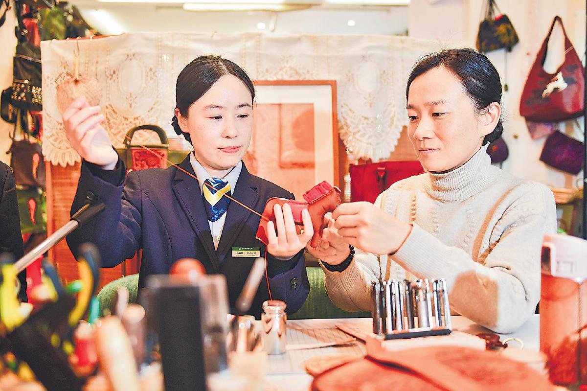 开店需要资金,正在郑鼎耀四处筹措时,来自福州市分行的一笔个人经营性贷款解了他的燃眉之急。有了这笔资金,新店装修、原材料采购等工作都得以顺利推进。如今,在郑鼎耀的两家店铺内,寓意吉祥的石榴、红鱼皮雕挂件以及实用的小钱包、钥匙包等产品深受喜爱。“有了金融支持,我们这些手艺人才敢大胆创新、拓展市场。”郑鼎耀说。