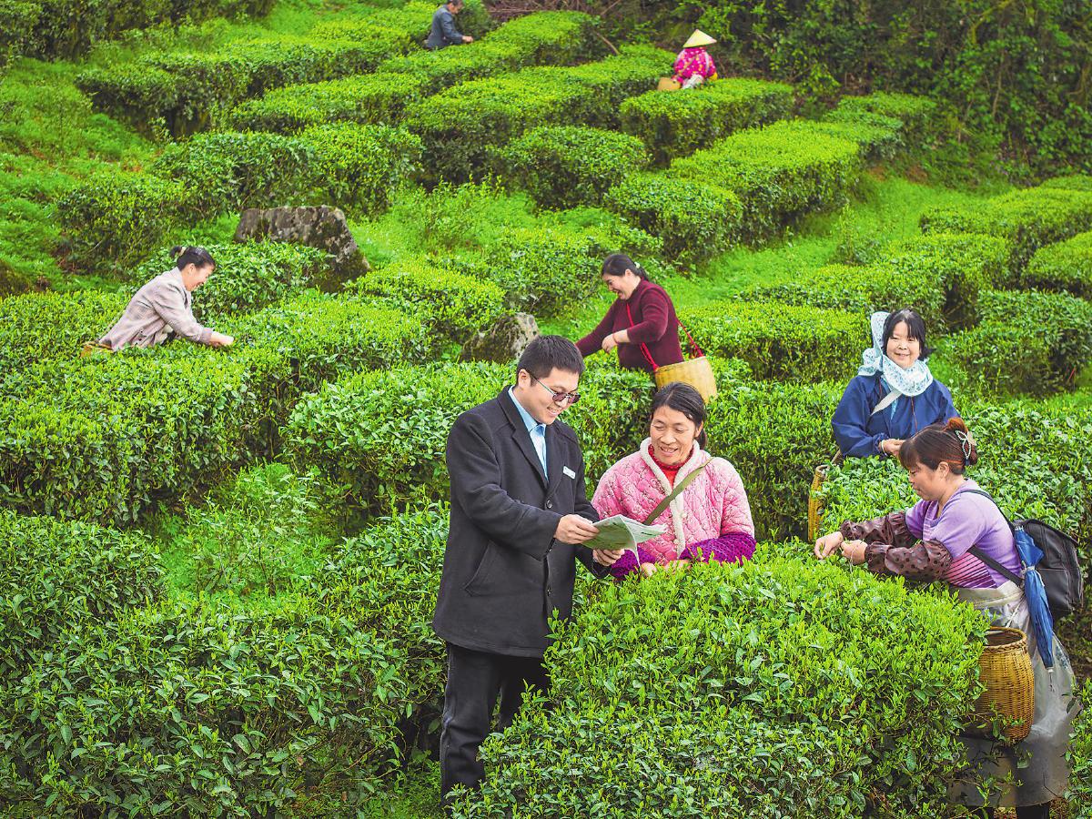 4月12日,重庆市武隆区,邮政工作人员深入茶山开展普惠金融政策宣讲。□王金庄摄