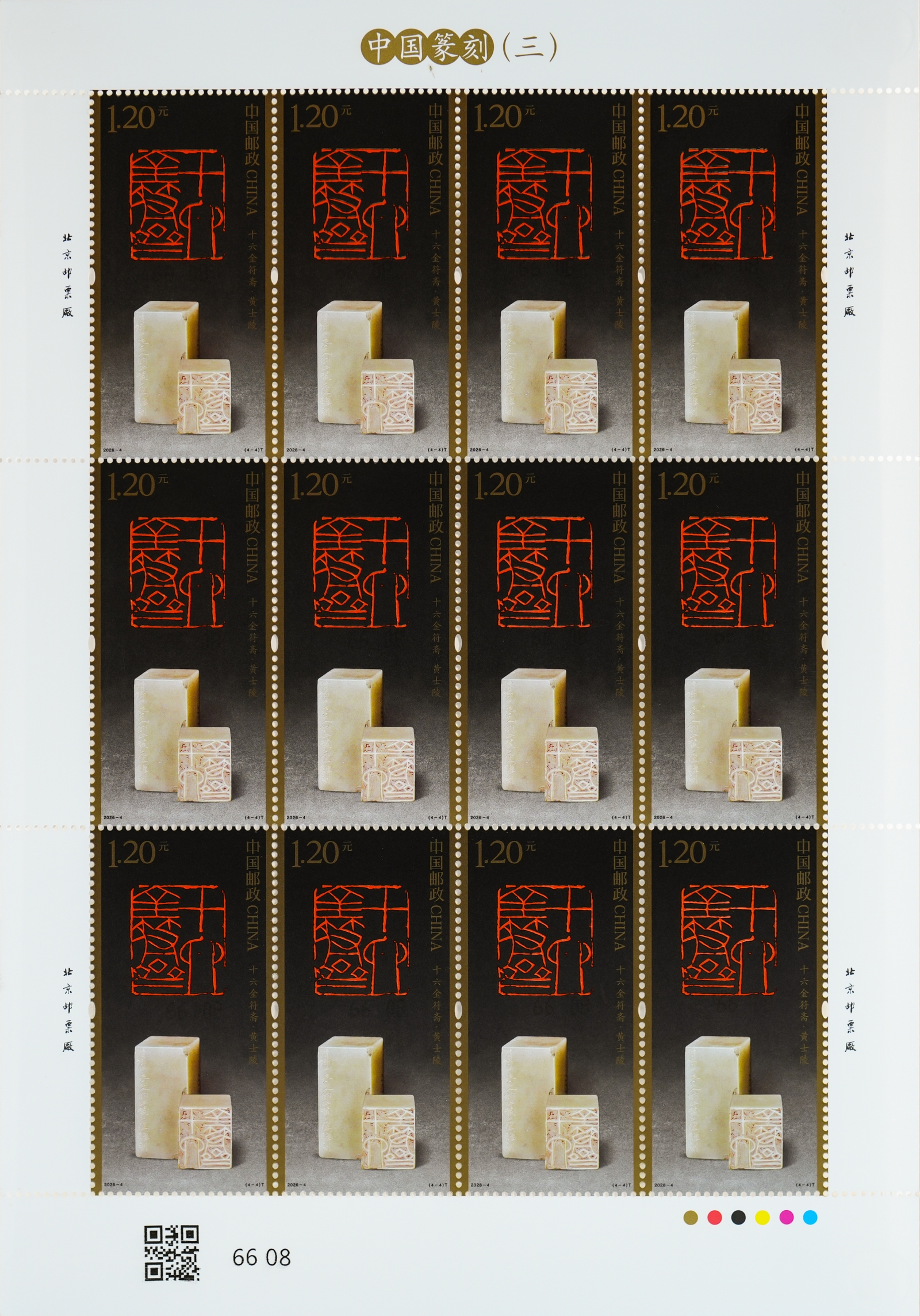 中国邮政定于2026年4月20日发行《中国篆刻(三)》特种邮票1套4枚。详情如下:
